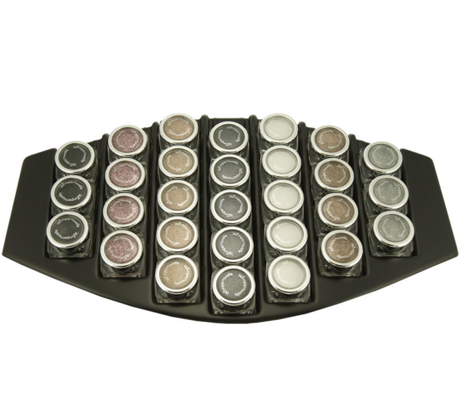 29 GLIMMER & GLITTER assortment of 7 Eyeshadow colours: 5 x Snow white, 5 x Platinum, 5 x Nut-brown, 4 x Sand, 4 x Rose, 3 x Black, 3 x Silver